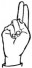 На ћирилици написано САЊА КЛИНЦОВ састоји се из 11 слова [?]. Исписано ћириличном једноручном азбуком за глувонеме: